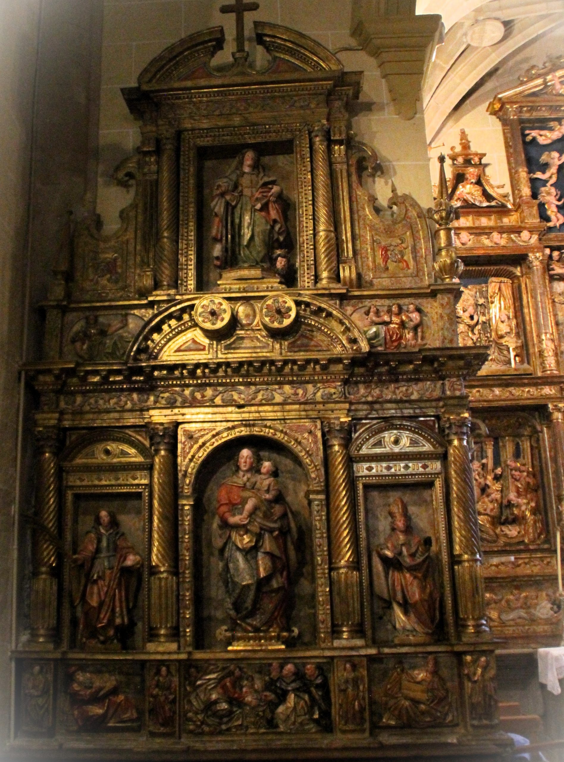 El sagrario del retablo, de planta trapezoidal, conserva relieves de Cristo y santos, mientras que una talla de la Virgen con el Niño, del siglo XIII, ocupa el lugar de una imagen anterior de san Juan Bautista.