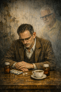 Y ahí apareció un sarcasmo que solo entiende quien vive del lado equivocado del miedo: tomó el prospecto, lo leyó, y se rió. Una risa seca, amarga; no de alivio, sino de incredulidad.