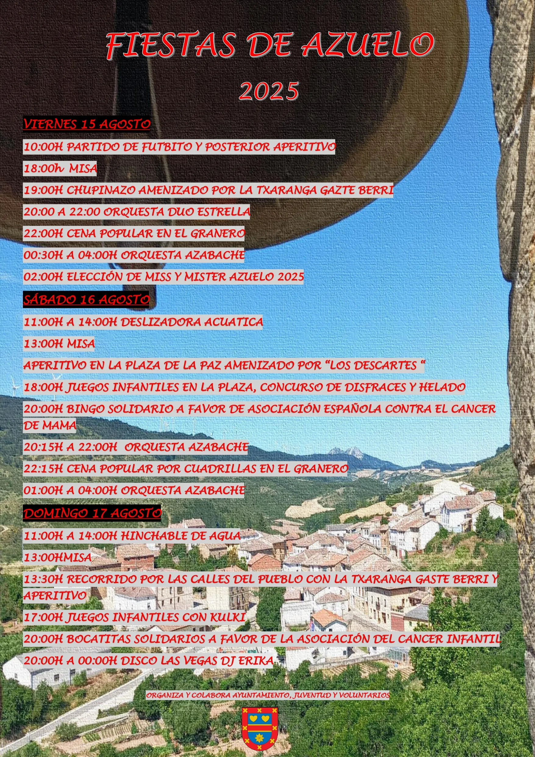 Las fiestas grandes se celebran la tercera semana de agosto, desde el viernes hasta el domingo. Este fin de semana […] El 15 de agosto se celebra una misa en honor a la Asunción de la Virgen, un acto religioso central […] El 16 de agosto marca el último día de las fiestas, iniciando con solemnidad a través de una Misa seguida […] La Romería de la Virgen de la Cuesta es una celebración destacada en la que los fieles se congregan para […] |