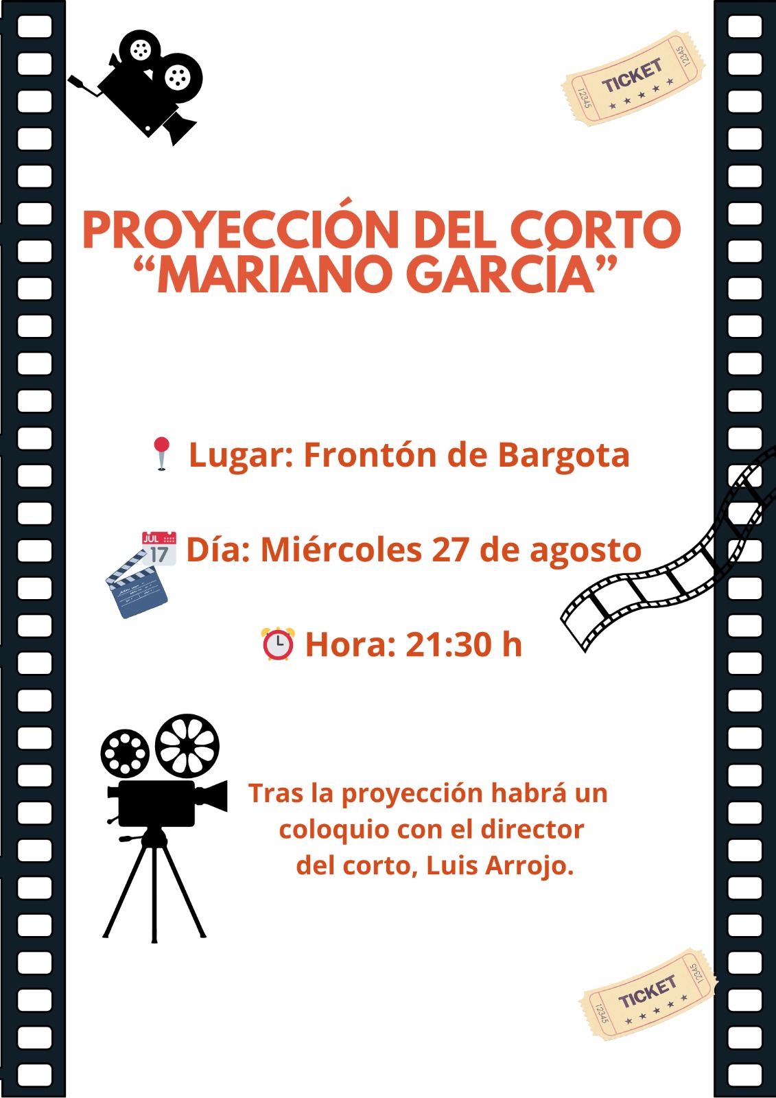 "Mariano García" protagonizado por Fernando Martinez Lugar: Frontón de Bargota Hora: 21.30 Al finalizar: Coloquio con el Director Luis Arrojo |