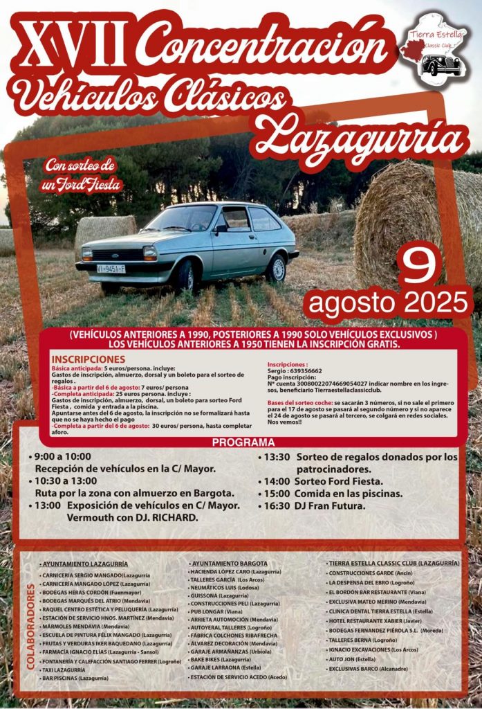 Este sábado 9 de agosto de 2025 celebramos en Bargota la XVII Concentración de Vehículos Clásicos, un evento organizado conjuntamente